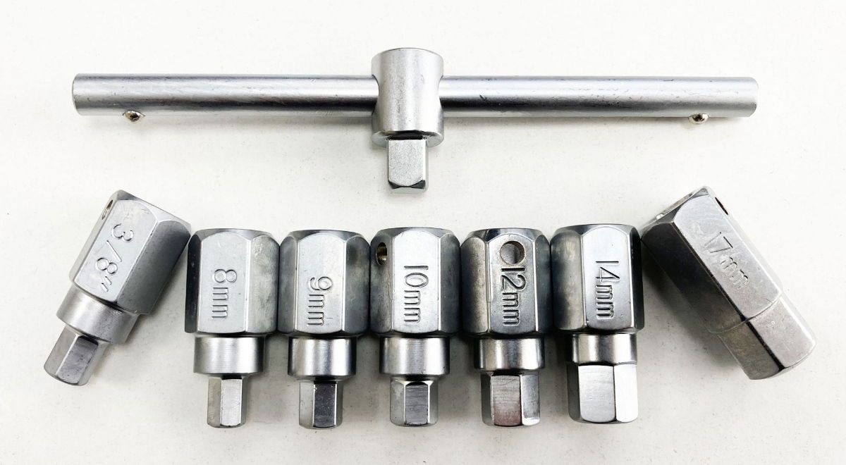 - Hex bit sizes: 8 mm, 9 mm, 10 mm, 12 mm, 14 mm, 17 mm, 3/8″
