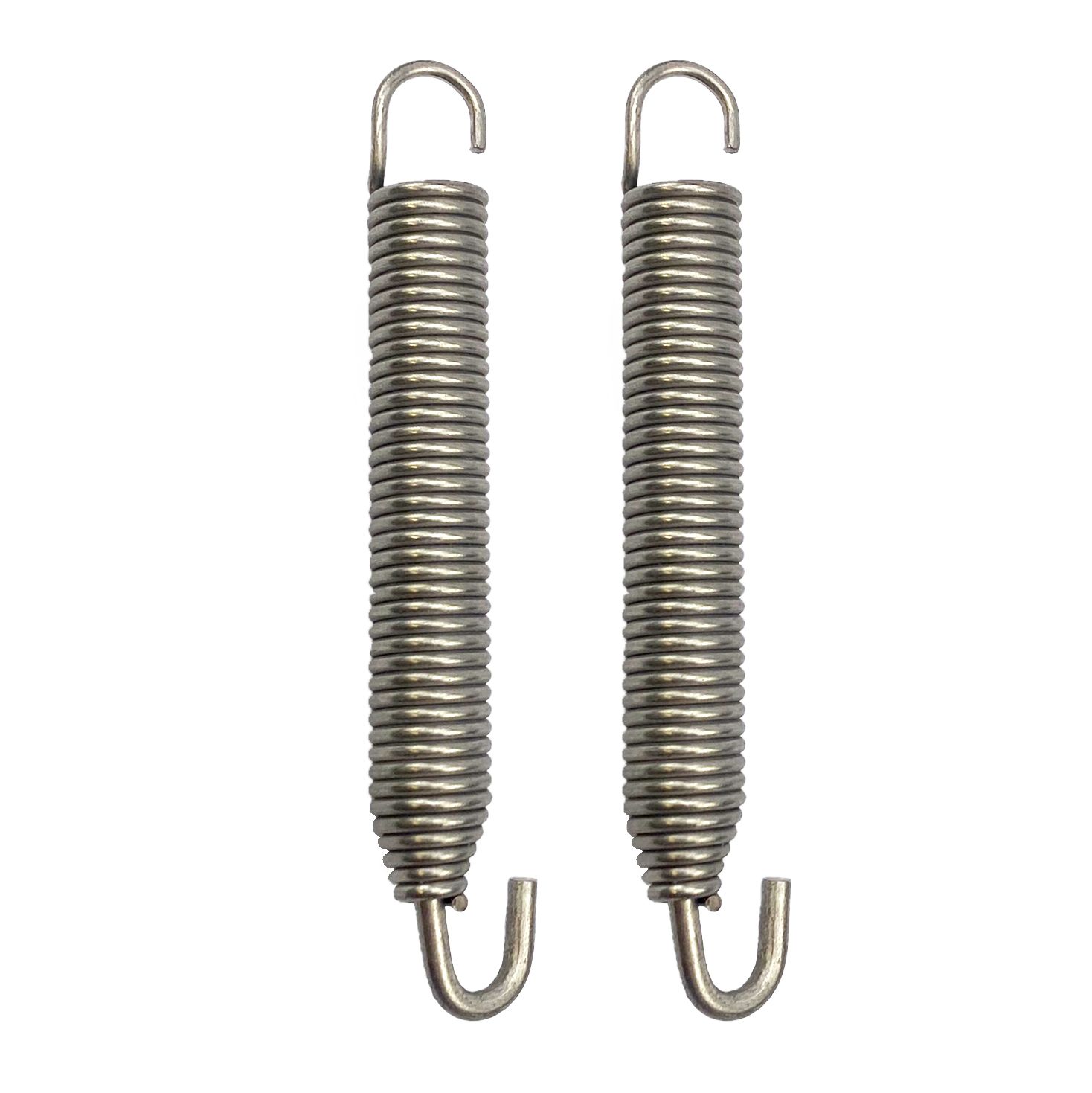 models. – Finish silver colour brushed stainless. – MANUFACTURER’S NOTES: When measuring for exhaust spring length, please use points as showen on image reference. – Exhaust springs should be measured when they are off the vehicle. Wear eye protection when removing. – The length measurement should be taken from inside hook to opposite end inside of hook.