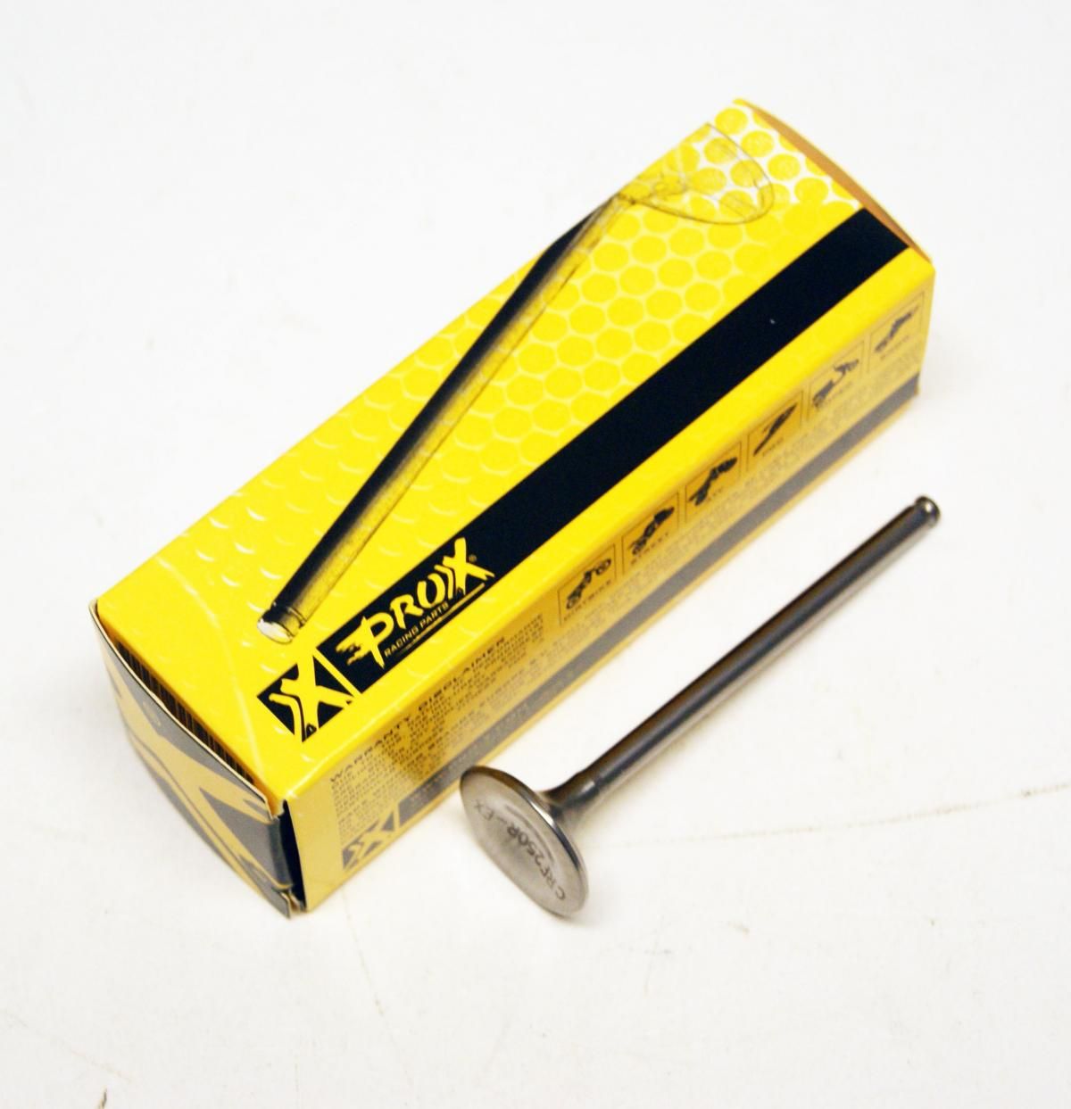 The ProX titanium valves are manufactured to high quality standards. High tech Ti3al alloy is forged in one-piece for extra strength while the material offers superior material properties at high temperatures the additional CrN coating offers extreme surface hardness and creates considerably lower friction. The ProX titanium valves do exceed OE specifications in dimensions and reliability.