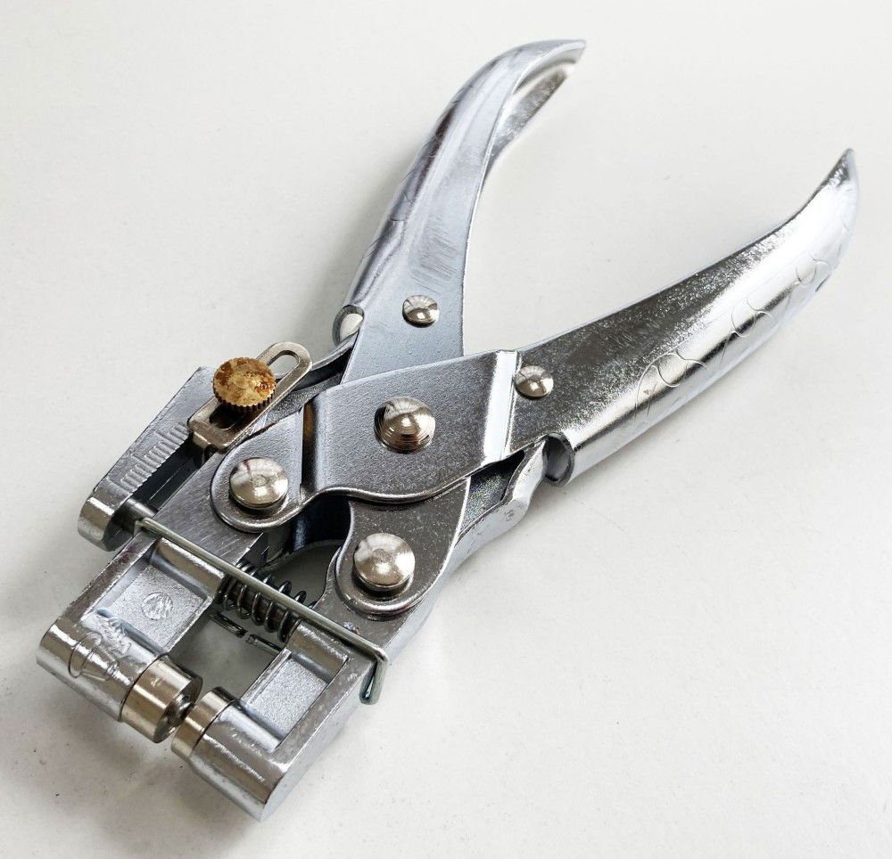 These heavy duty eyelet pliers feature a chrome plated body and are fitted with a separate hole punch for efficient hole making. A margin guide is included for consistency, and the tool comes with 100 brass eyelets.