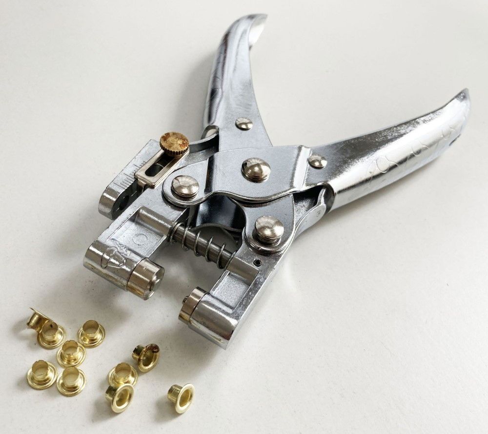 EYELET PLIERS HEAVY DUTY 165mm CHROME PLATED WITH 100PC BRASS EYELETS – TOOLZONE KDPPL230