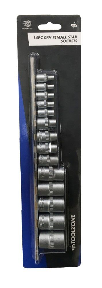 FEMALE STAR SOCKET SET 14PC CRV 1/4″ 3/8″ 1/2″ DRIVE E4-E24 – TOOLZONE KDPSD279