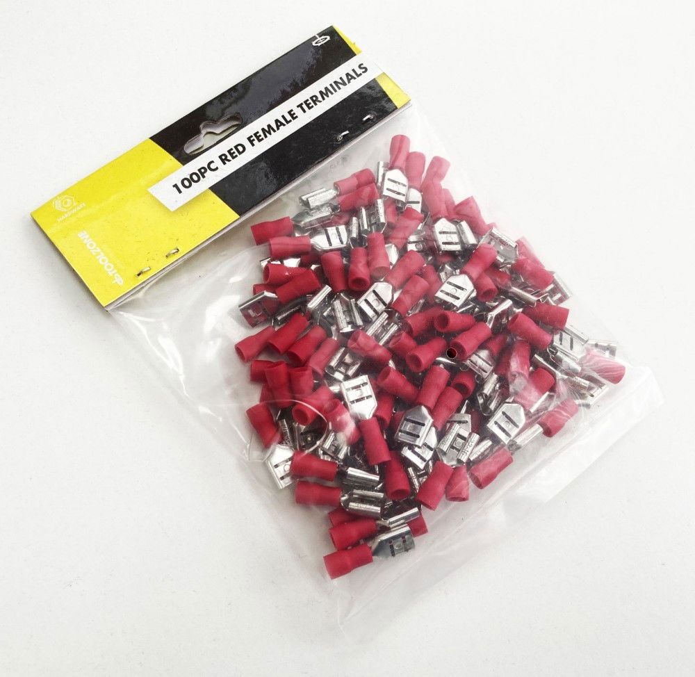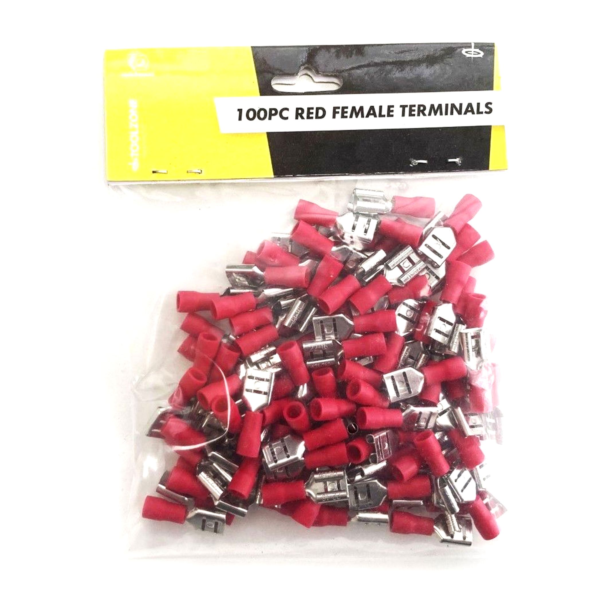 FEMALE TERMINALS 100PC RED SEMI INSULATED 22-16 awg 7.4mm x 0.4mm – TOOLZONE KDPEL137