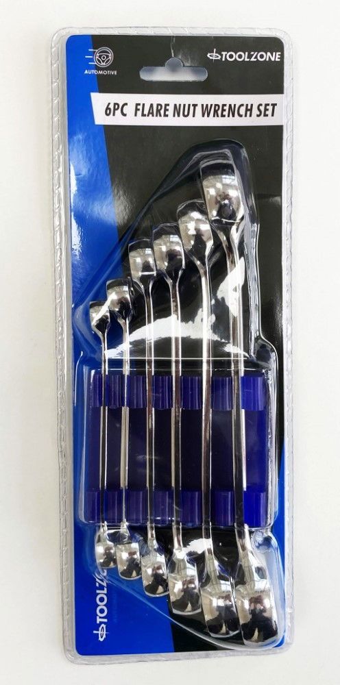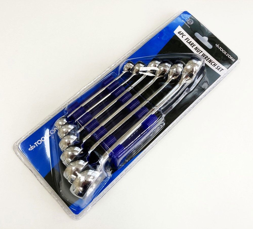 FLARE NUT WRENCH SPANNER SET 6PC 6x8mm TO 22x24mm CHROME VANADIUM POLISHED – TOOLZONE KDPSP034