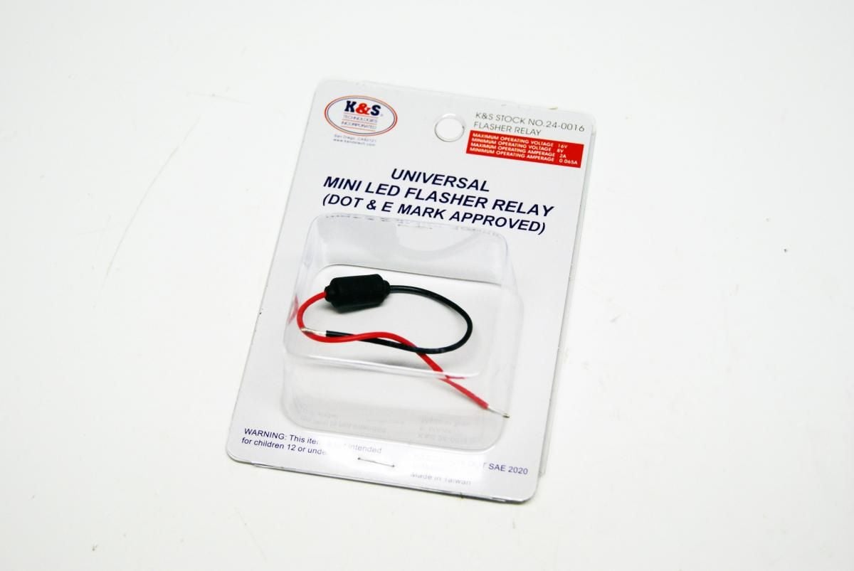 DOT & E-Mark Flasher Relay with an ultra-compact design specifically made for LED Turn Signal applications. Simple to install two wire relay can be used to replace the OE flasher or for custom builds. A simple and affordable solution to eliminate “Fast Flashing” when installing LED Turn Signals. When installing the Universal Mini LED Flasher Relay there is no need to install In-Line Resistors, and because of the compact design it can be hidden for a cleaner look. The Mini Flasher Relay is also suitable for turn signals with regular incandescent bulbs.