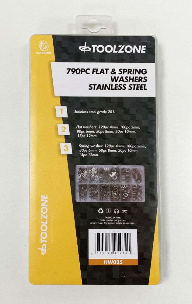 FLAT AND SPRING WASHERS ASSORTMENT 790pc STAINLESS STEEL 4-12mm – TOOLZONE KDPHW025