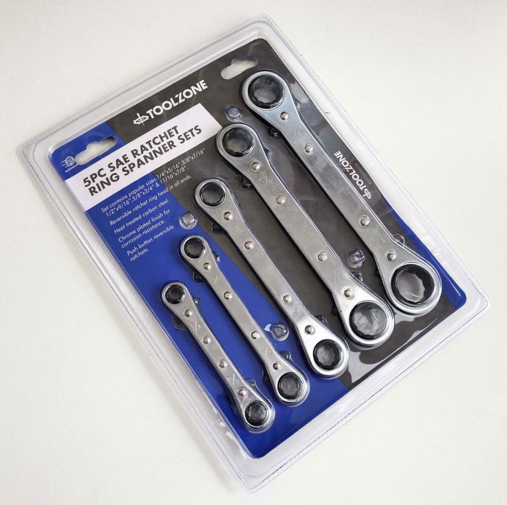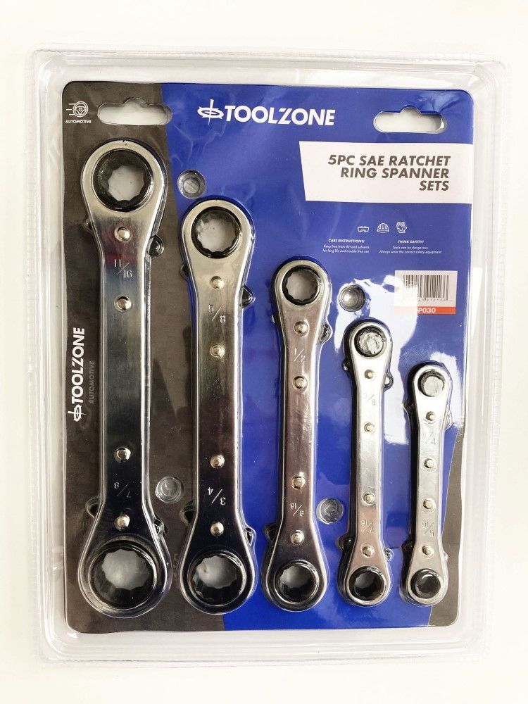 FLAT RATCHET RING SPANNER SET 5PC AF CHROME PLATED – TOOLZONE KDPSP030