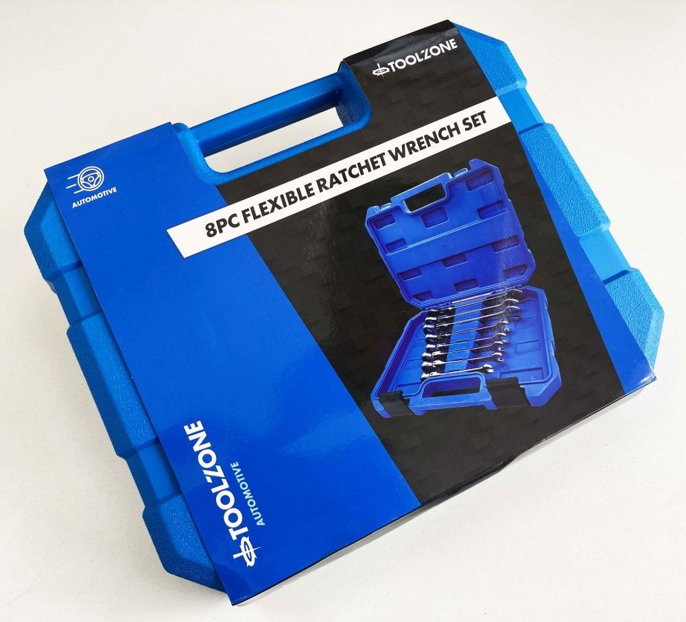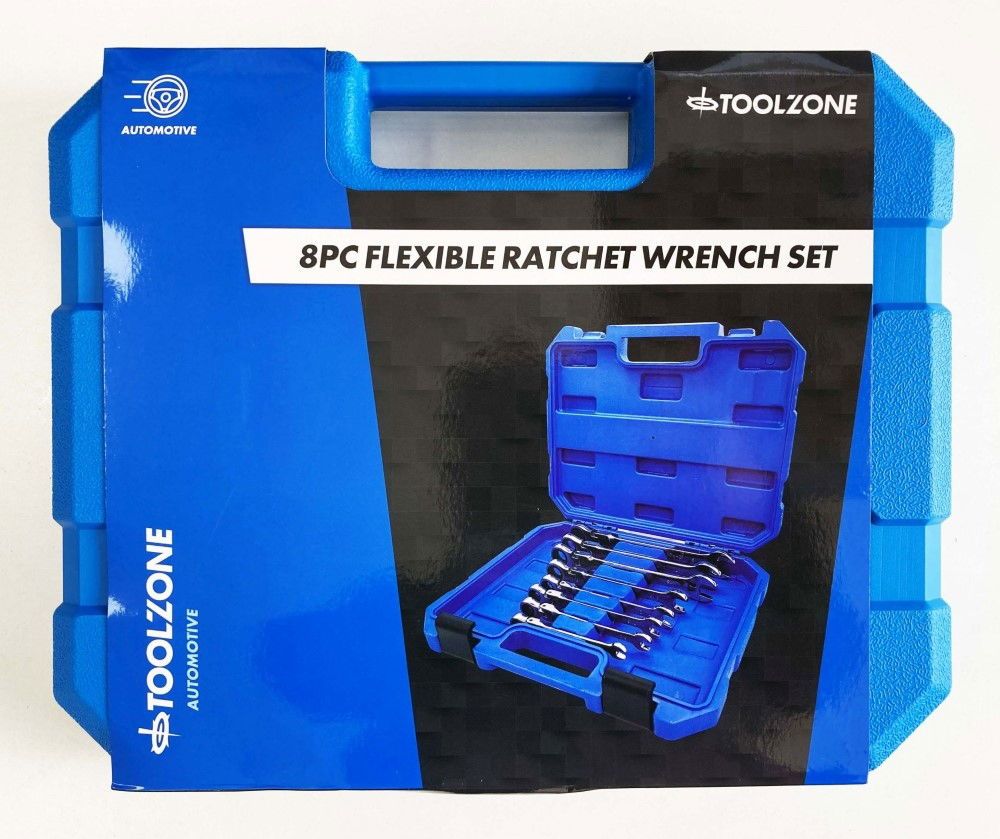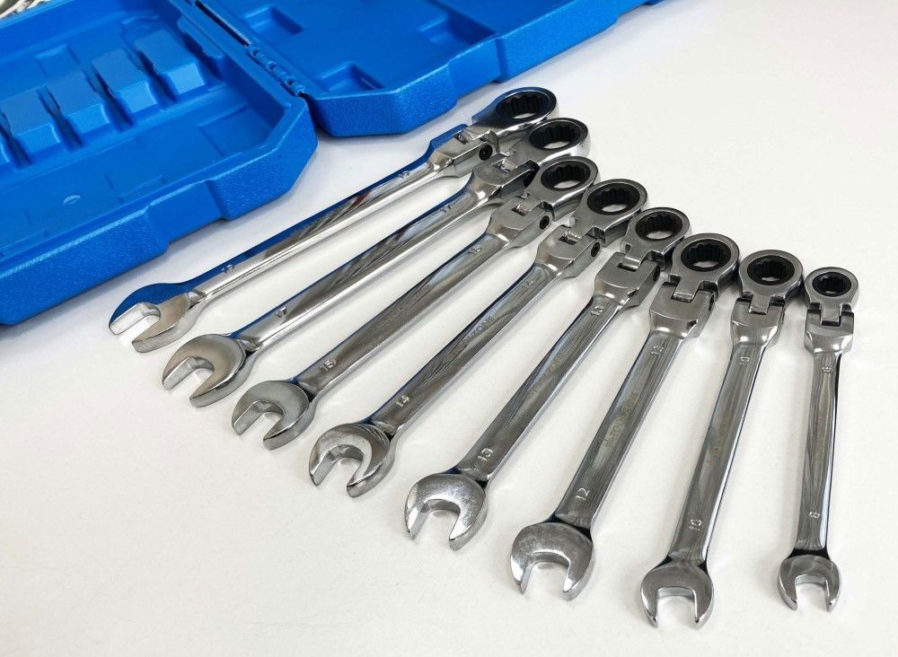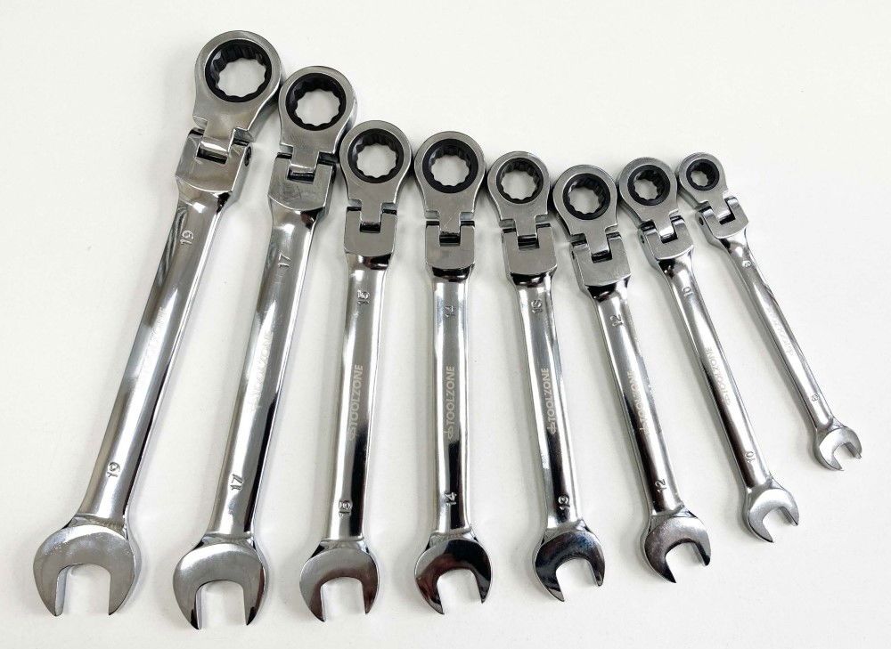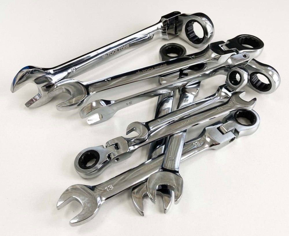 FLEX RATCHET COMBINATION WRENCH SET 8pc METRIC CHROME VANADIUM POLISHED FINISH – TOOLZONE KDPSP128