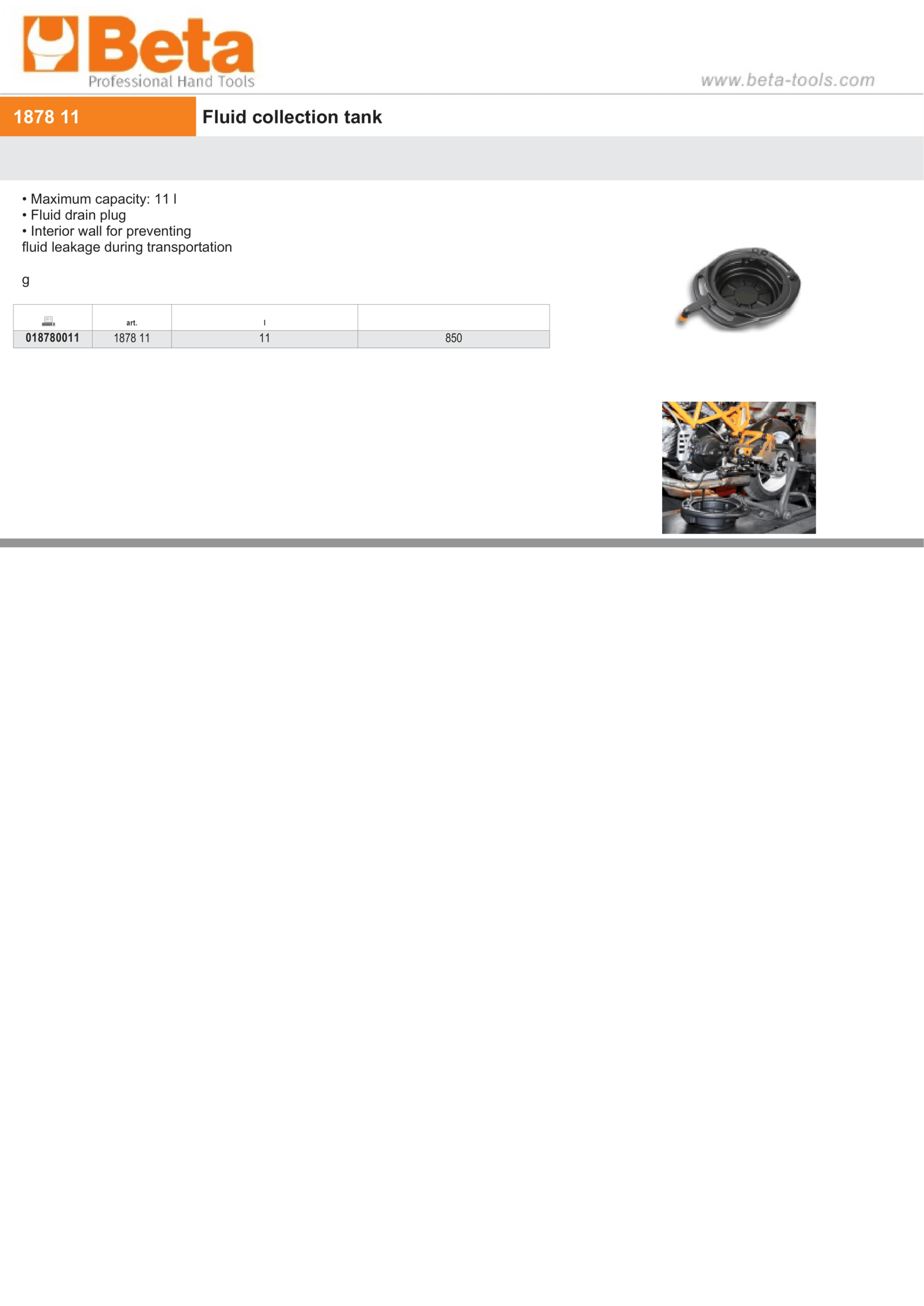 The Beta Tools Fluid Collection Tank 11L with Drain Plug – Beta Tools 1878 11 is a versatile and efficient solution for fluid management in various maintenance tasks. This tank is designed to provide a reliable and convenient method for collecting and transporting fluids, making it an essential tool for both professional and personal use.