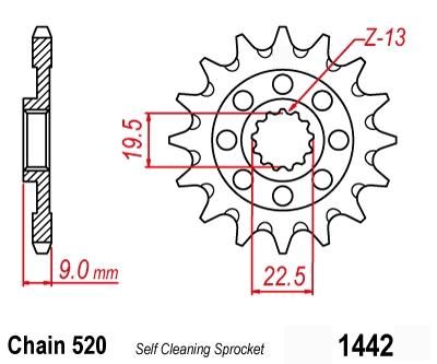 FRONT SPROCKET 1442 RAPTOR LIGHT & SELF CLEANING 10B-442-13