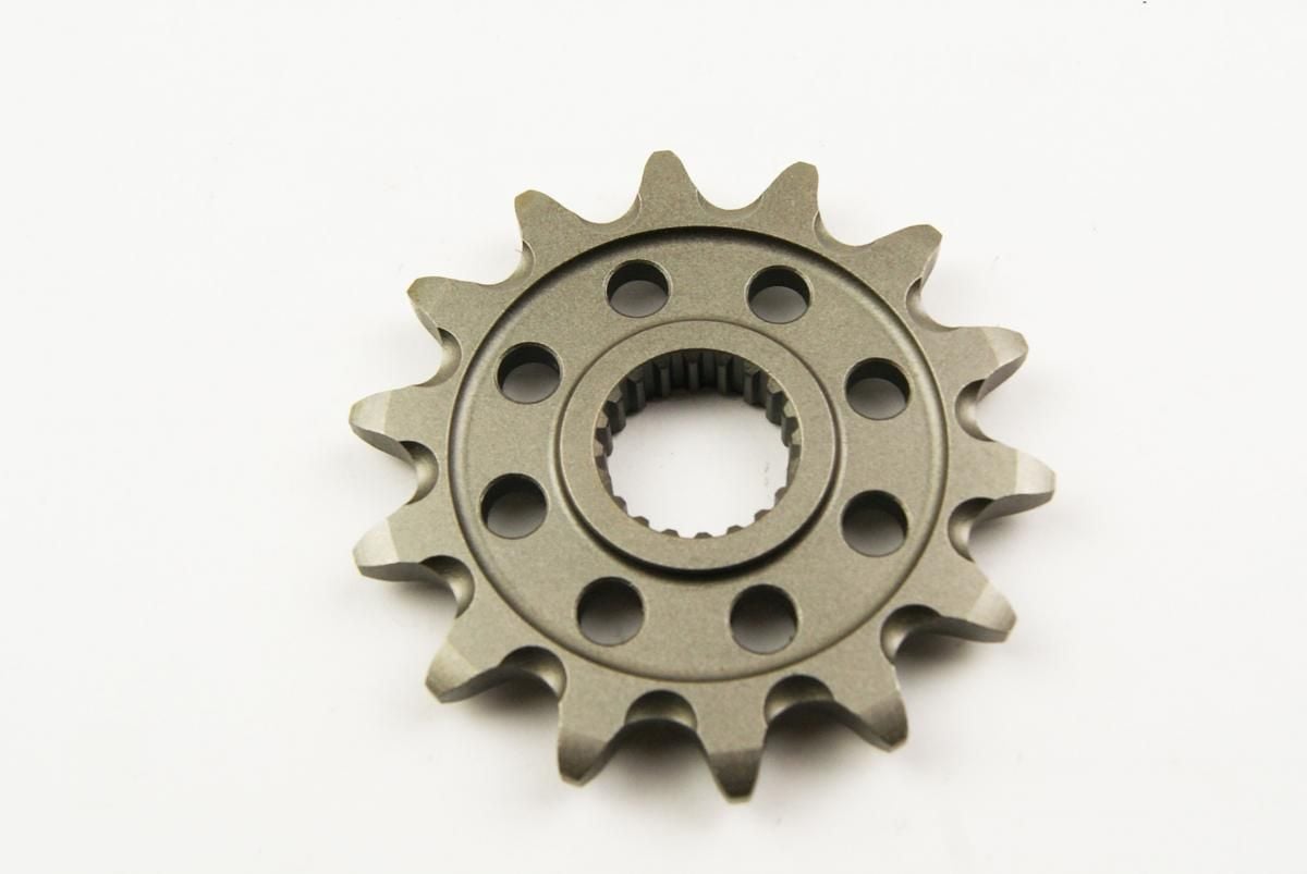 from low corrosion SCM440 Ni-Chrome Molybdenum steel, featuring a low carbon core to prevent breaking while the case hardened surface offers maximum wear resistance. Precision CNC machining ensure a perfect fit and the lightweight design including lightening holes offer ultimate performance. The sprockets also come with self-cleaning dirt grooves to extend chain and sprocket life to the max.