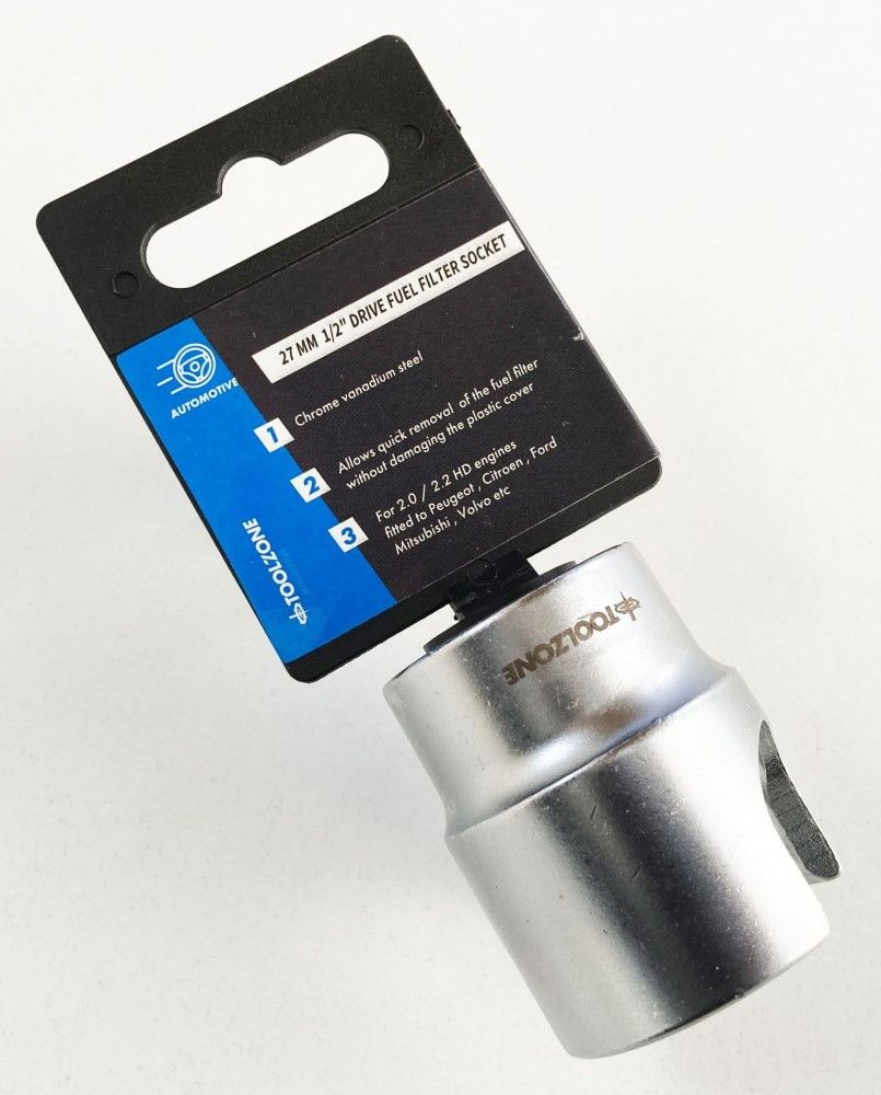FUEL FILTER SOCKET 27mm 1/2″ DRIVE CHROME VANADIUM STEEL – TOOLZONE KDPSS246
