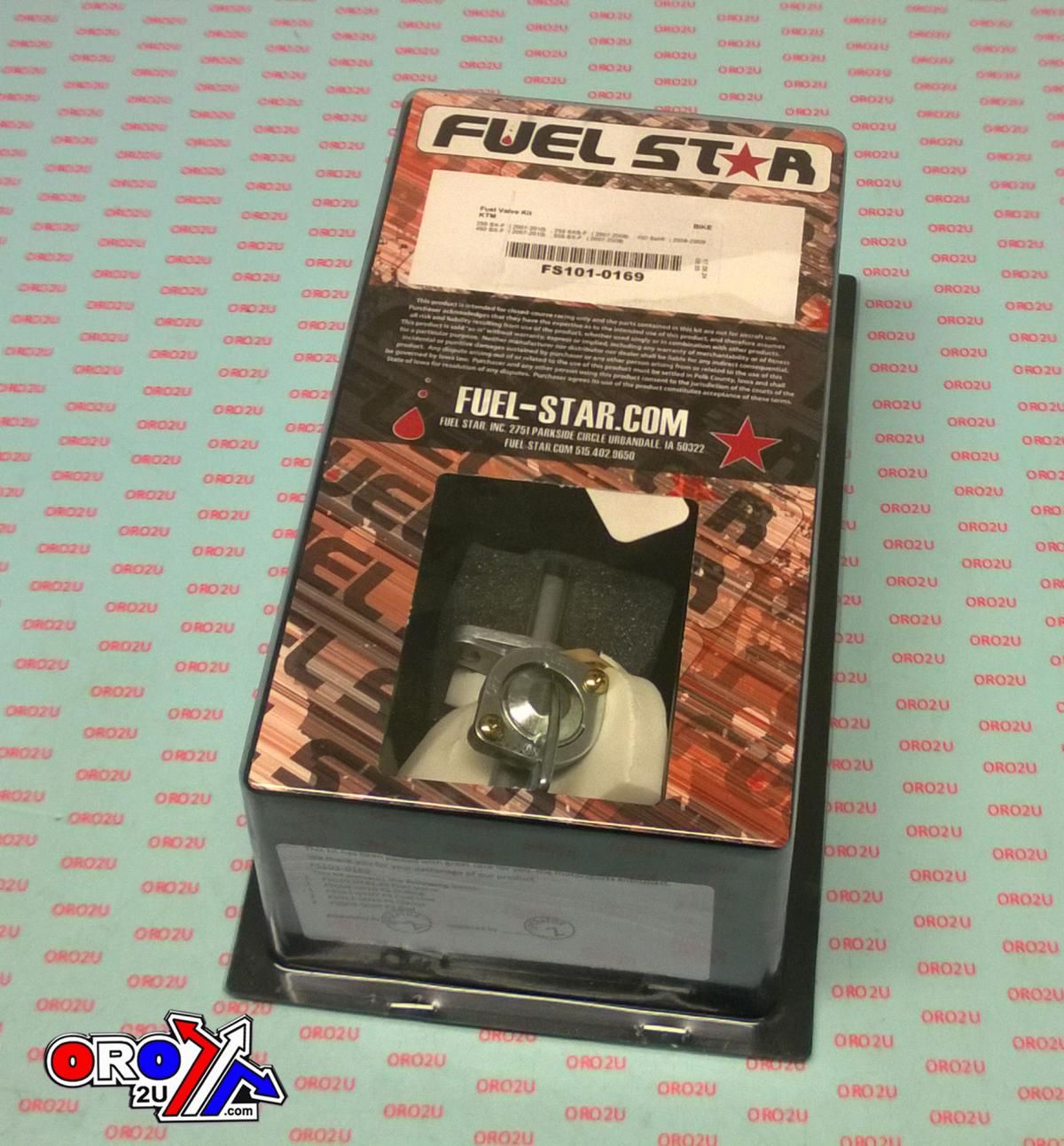 This Star Fuel Valve Kit FS101-0169 is a direct OE replacement for select KTM SX-F and SMR models from 2007 to 2010. The kit includes essential components for installation and complies with C.A.R.B. and EPA fuel line permeation standards.