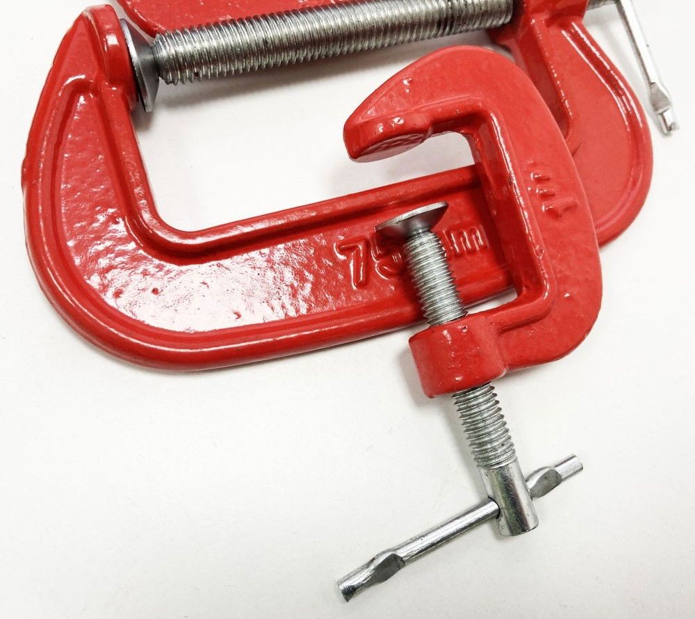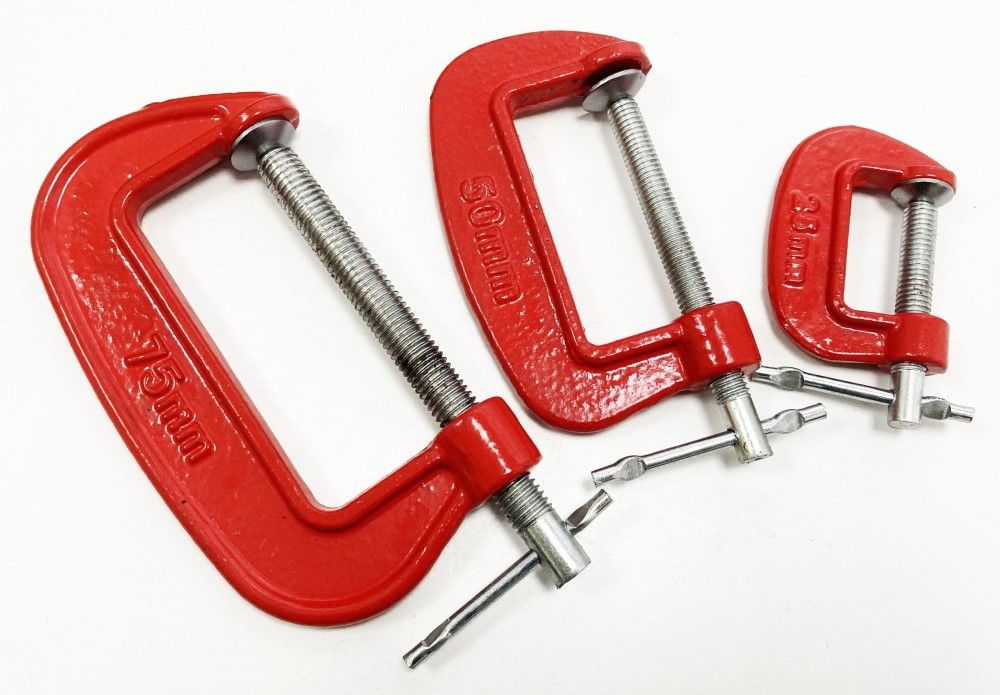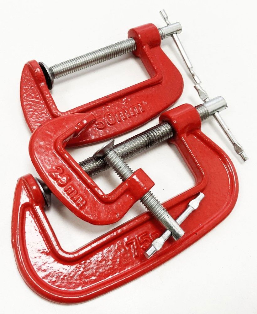 - Set includes three G clamps: 25 mm (1″), 50 mm (2″), 75 mm (3″)