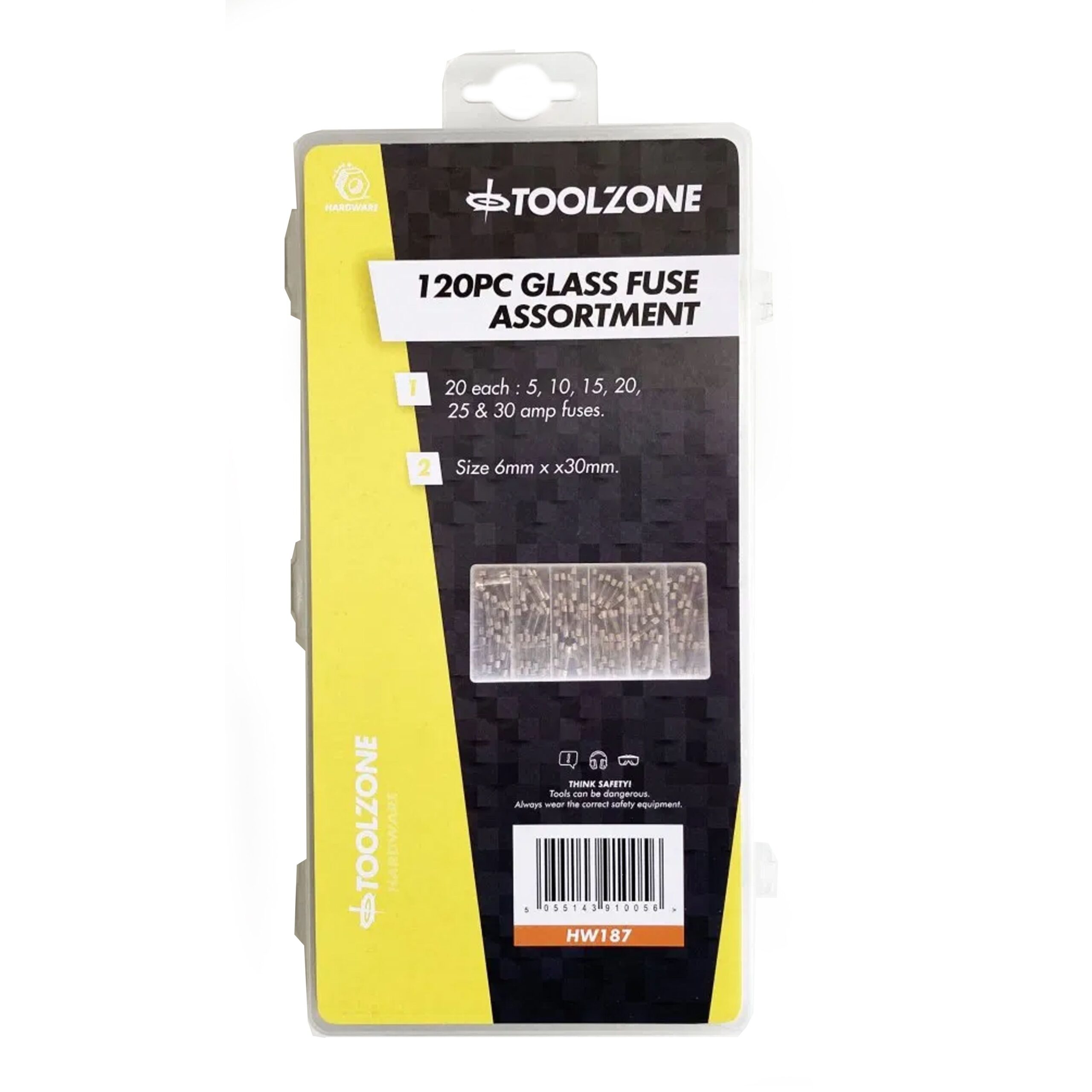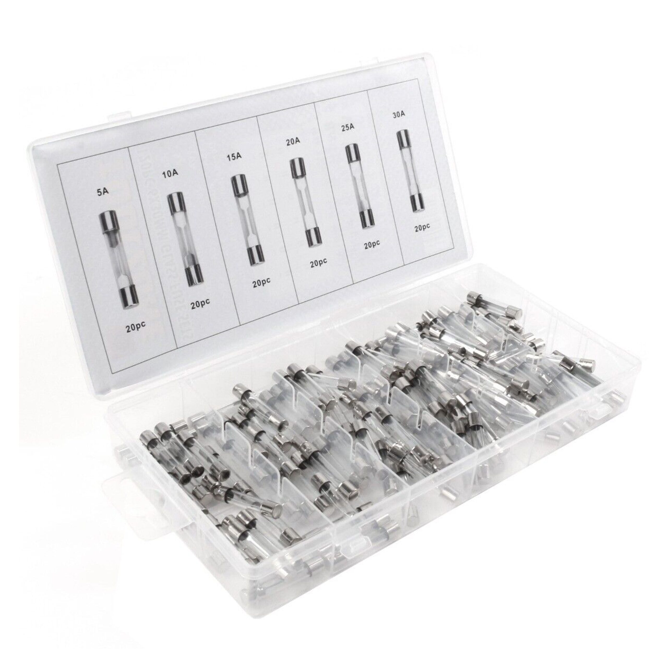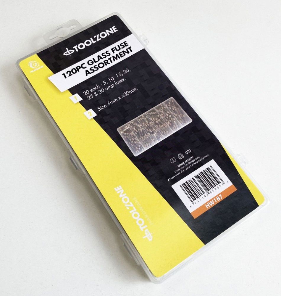 GLASS FUSE ASSORTMENT 120pc 6x30mm IN STORAGE BOX – TOOLZONE KDPHW187