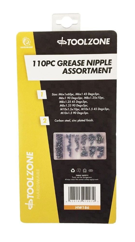 GREASE NIPPLE ASSORTMENT 110pc IN STORAGE BOX – TOOLZONE KDPHW186