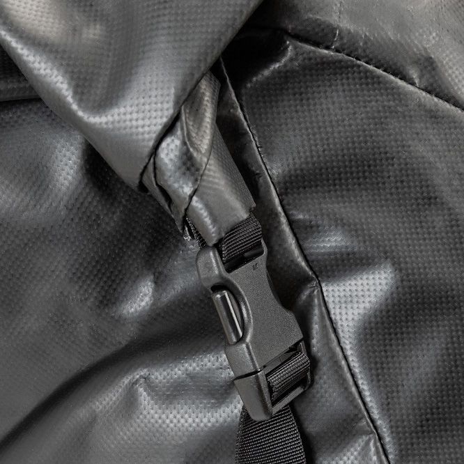 - Side compression straps with integrated grab handles can be used to handle the packed bag or assist in righting the bike after a tip-over