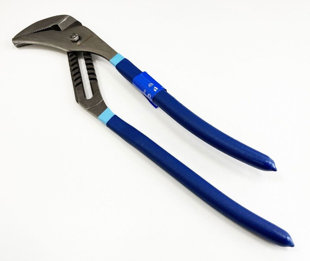 These 20″ groove joint water pump pliers are designed for rapid size adjustment and a wide jaw opening. They feature a groove joint mechanism, a precision polished steel body, and a quality grip handle for secure handling.