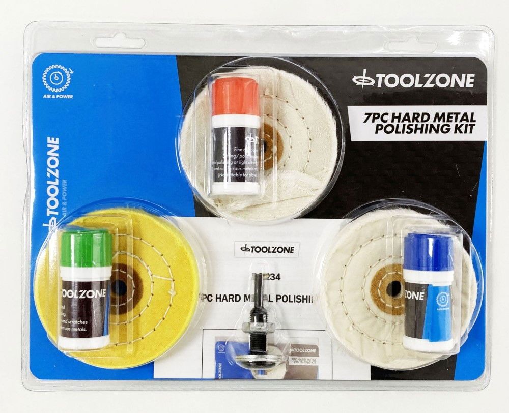 HARD METAL POLISHING SET 7PC WITH WHEELS AND COMPOUNDS – TOOLZONE KDPDR234