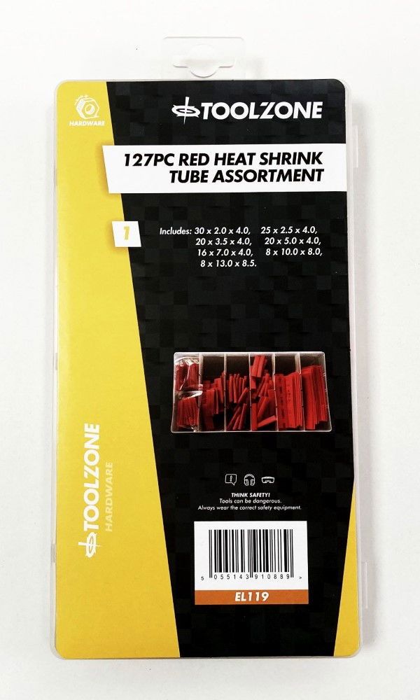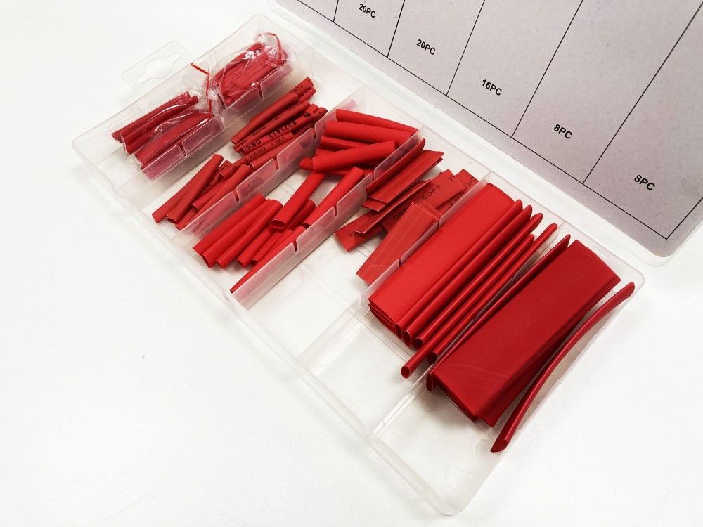 HEAT SHRINK TUBE ASSORTMENT 127PC RED WITH PLASTIC BOX – TOOLZONE KDPEL119