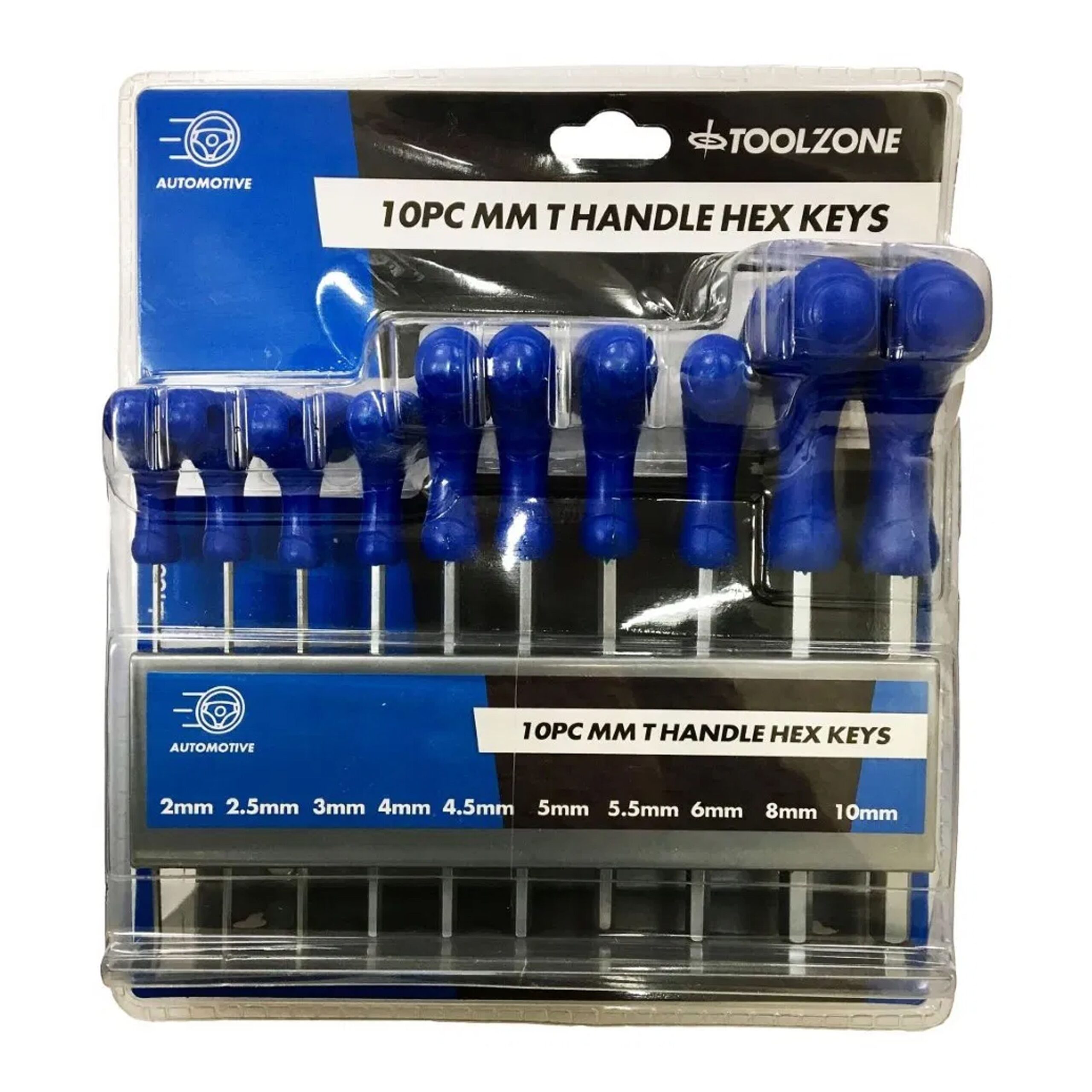 HEX KEY SET T HANDLE METRIC 10pc IN RACK CHROME VANADIUM – TOOLZONE KDPHX027