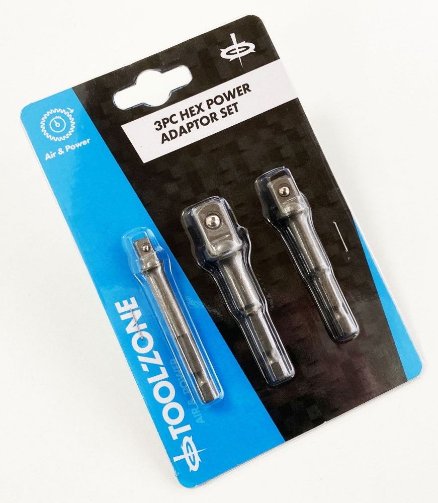 HEX POWER ADAPTOR SET 3PC 1/4″ 3/8″ 1/2″ DRIVE 65mm 70mm – TOOLZONE KDPSD243
