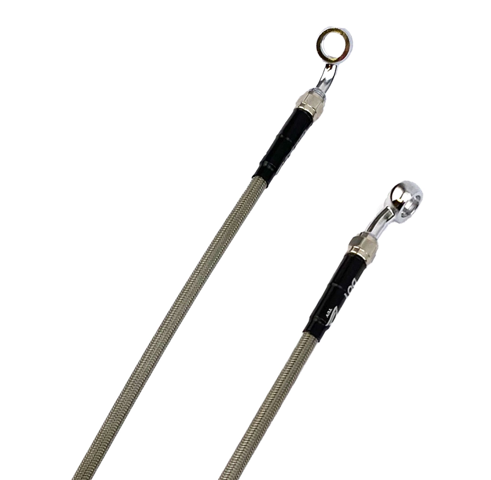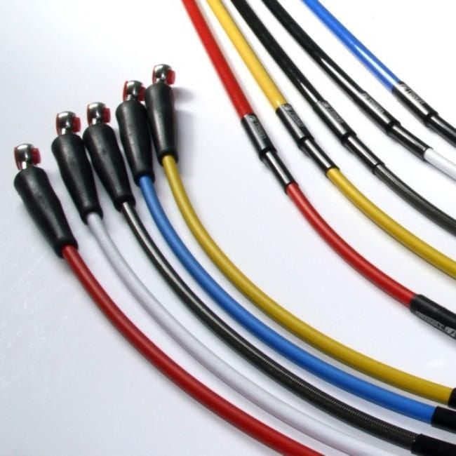 When needed off road lines have a nylon rigid sleeving to clamp the hose on fork legs or swing arm.