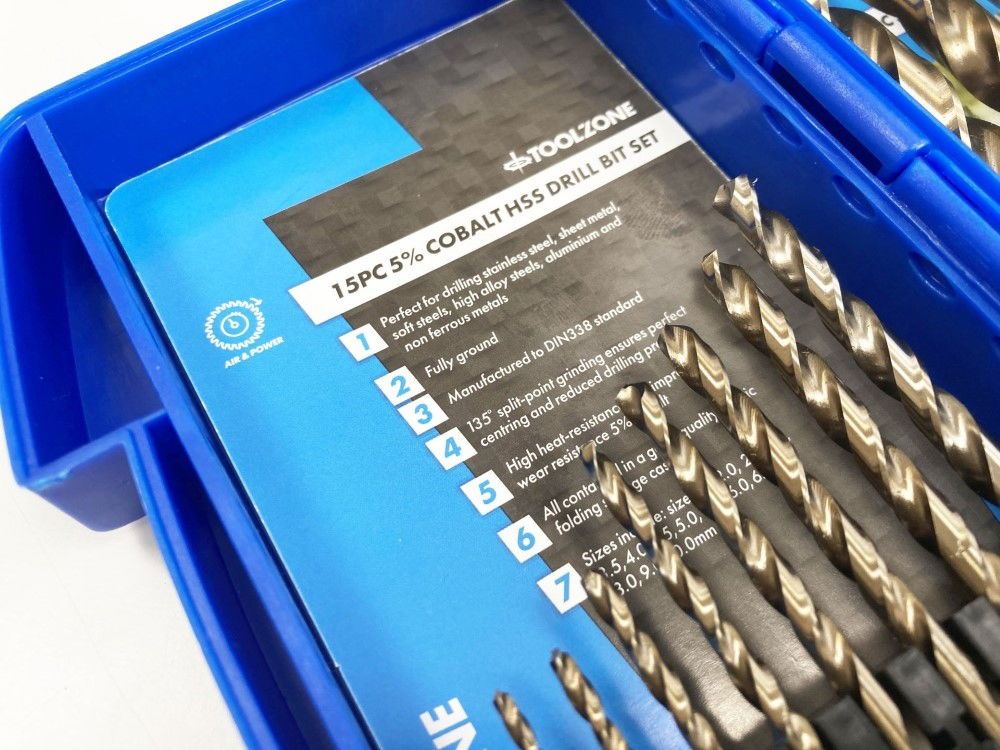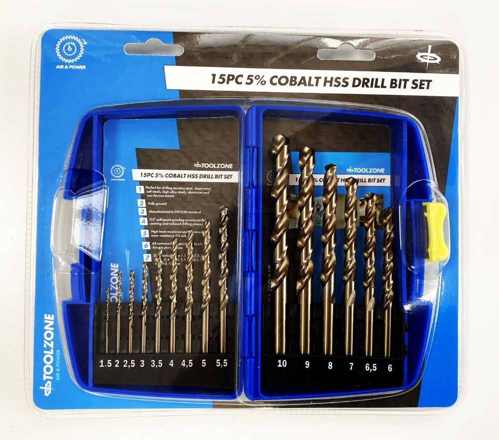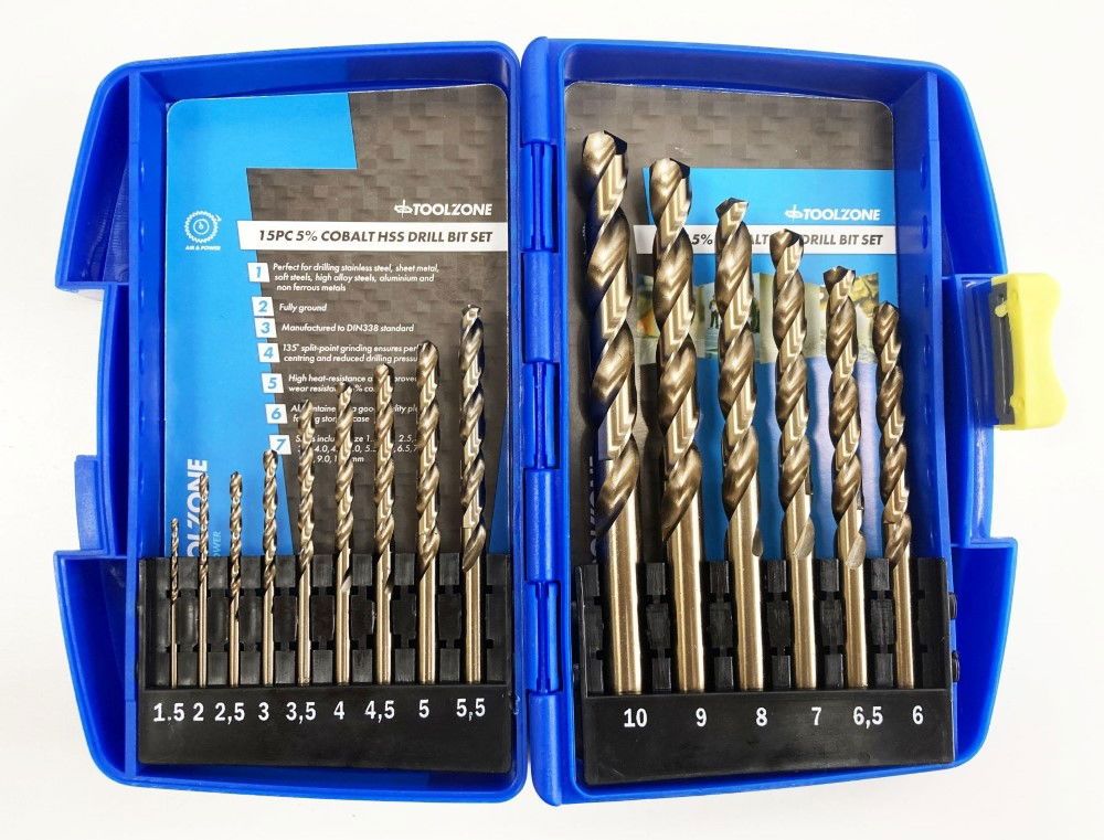 HSS DRILL SET 15PC 5% COBALT 1.5-10mm – TOOLZONE KDPDR389