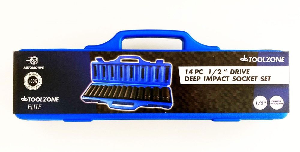 IMPACT SOCKET SET 1/2″ DRIVE DEEP 14 PIECES 10-32mm – TOOLZONE KDPSS127