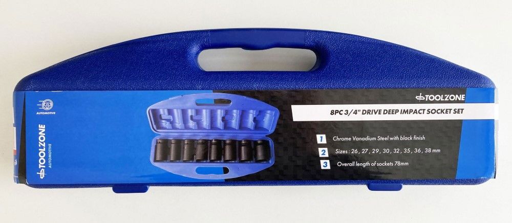 IMPACT SOCKET SET 3/4″ DRIVE DEEP 8 PIECES 26-38mm – TOOLZONE KDPSS130