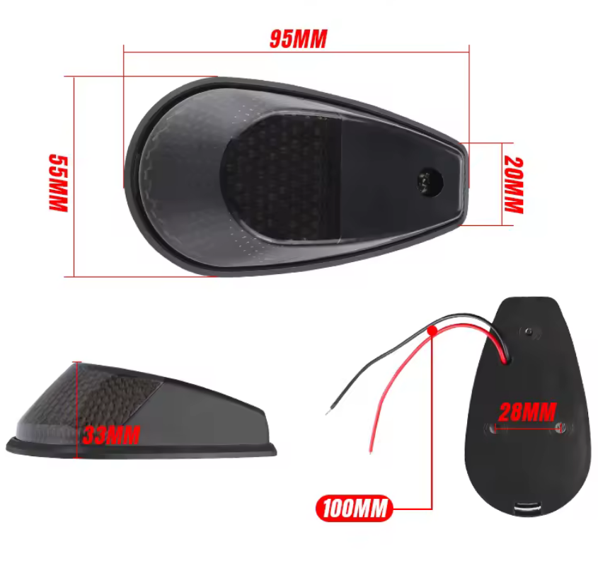 - Black housing with red lens