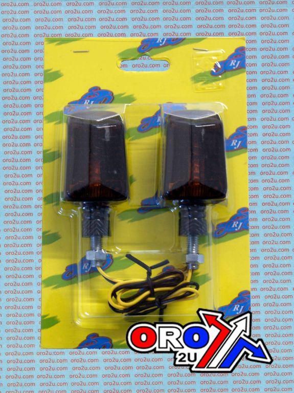 Rectangular Indicators with Carbon effect case. Bulbs 12v,23w. Size: 75mm L x 38mm W. M8 x 20mm stem. Come as a Set of 2. ‘E9’ marked.
