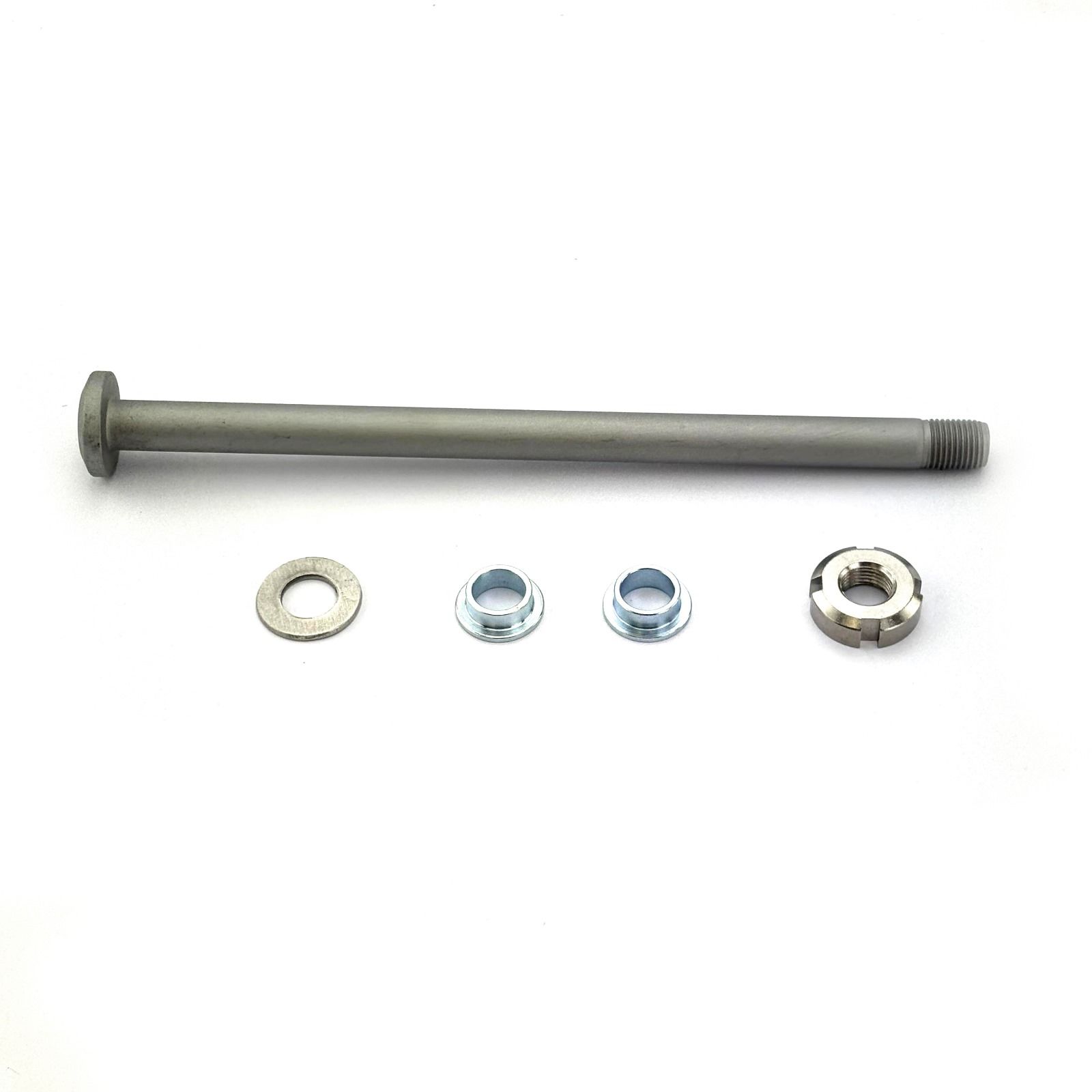 - Complete service kit with axle, nut, shims and bushings