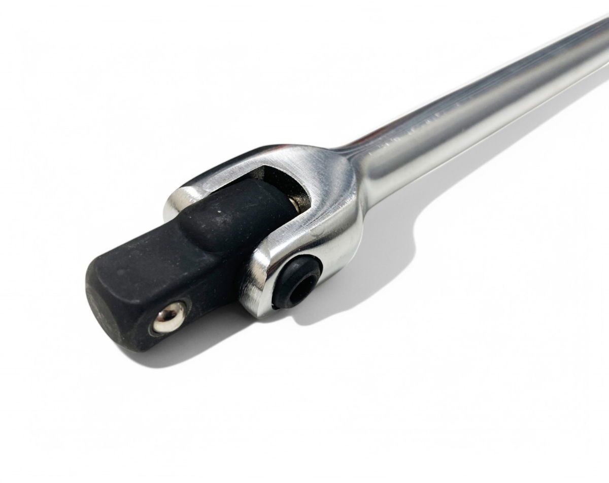 This 18″ knuckle bar is designed for 1/2″ drive applications and features a comfort rubber grip handle. Constructed from heavy duty hardened, heat treated steel, the bar has a length of 450 mm and a net weight of 681 g. Package dimensions are 3 x 46 x 3 cm.