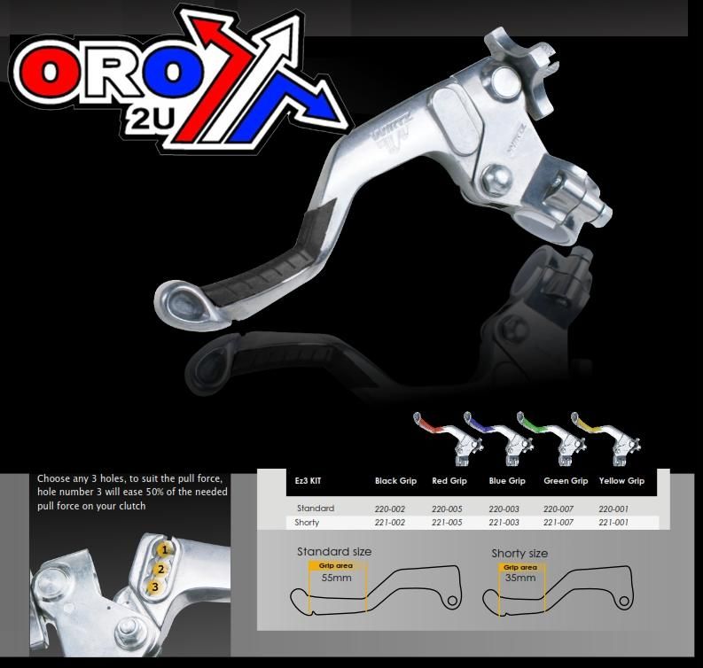Unique design allows 30% and 50% less effort required to pull on the clutch. 3 holes on the lever to choose the amount of force on the pull.