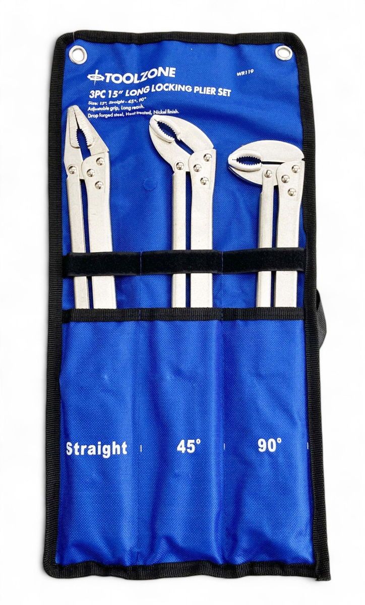 LOCKING PLIER SET 3 PIECE 15″ STRAIGHT 45 DEGREE 90 DEGREE – TOOLZONE KDPWR119