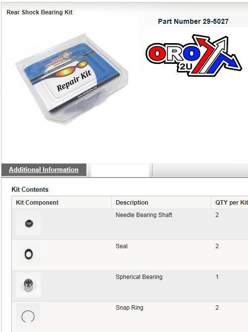 - The kit includes everything you need: shock bearing, seals, spacers, and pins (if required).