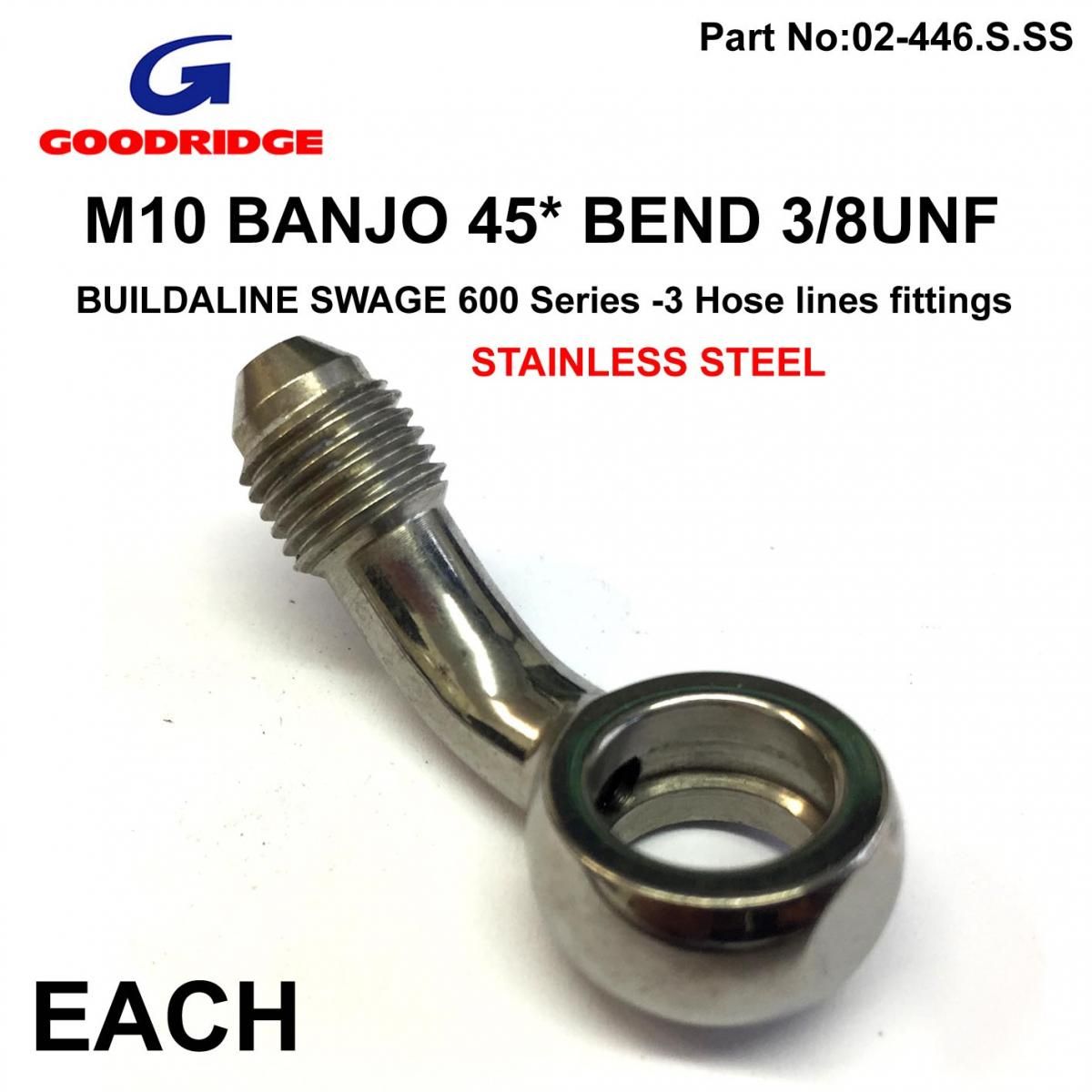 M10 BANJO 45* BEND 3/8UNF GR, B594-03C SWAGE CRIMP FITTING 600 Series -3, GOODRIDGE / STAINLESS STEEL