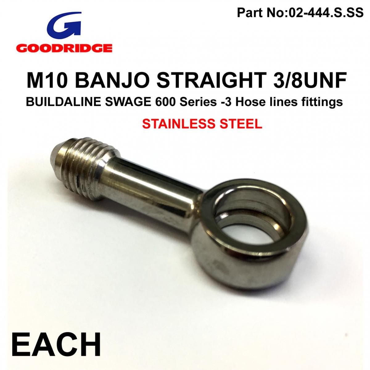 M10 BANJO STRAIGHT 3/8UNF GR, B592-03C SWAGE CRIMP FITTING 600 Series -3, GOODRIDGE / STAINLESS STEEL