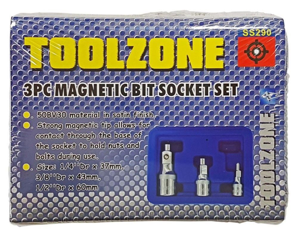MAGNETIC BIT SOCKET DRIVER SET 3 PIECES 1/4″ 3/8″ 1/2″ DRIVE – TOOLZONE KDPSS290
