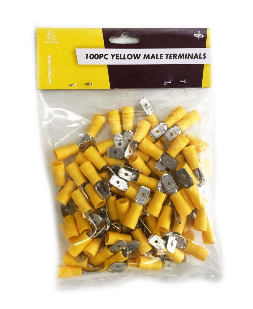 MALE TERMINALS 100PC YELLOW SEMI INSULATED 12-10 awg 6.3mm x 0.4mm – TOOLZONE KDPEL142