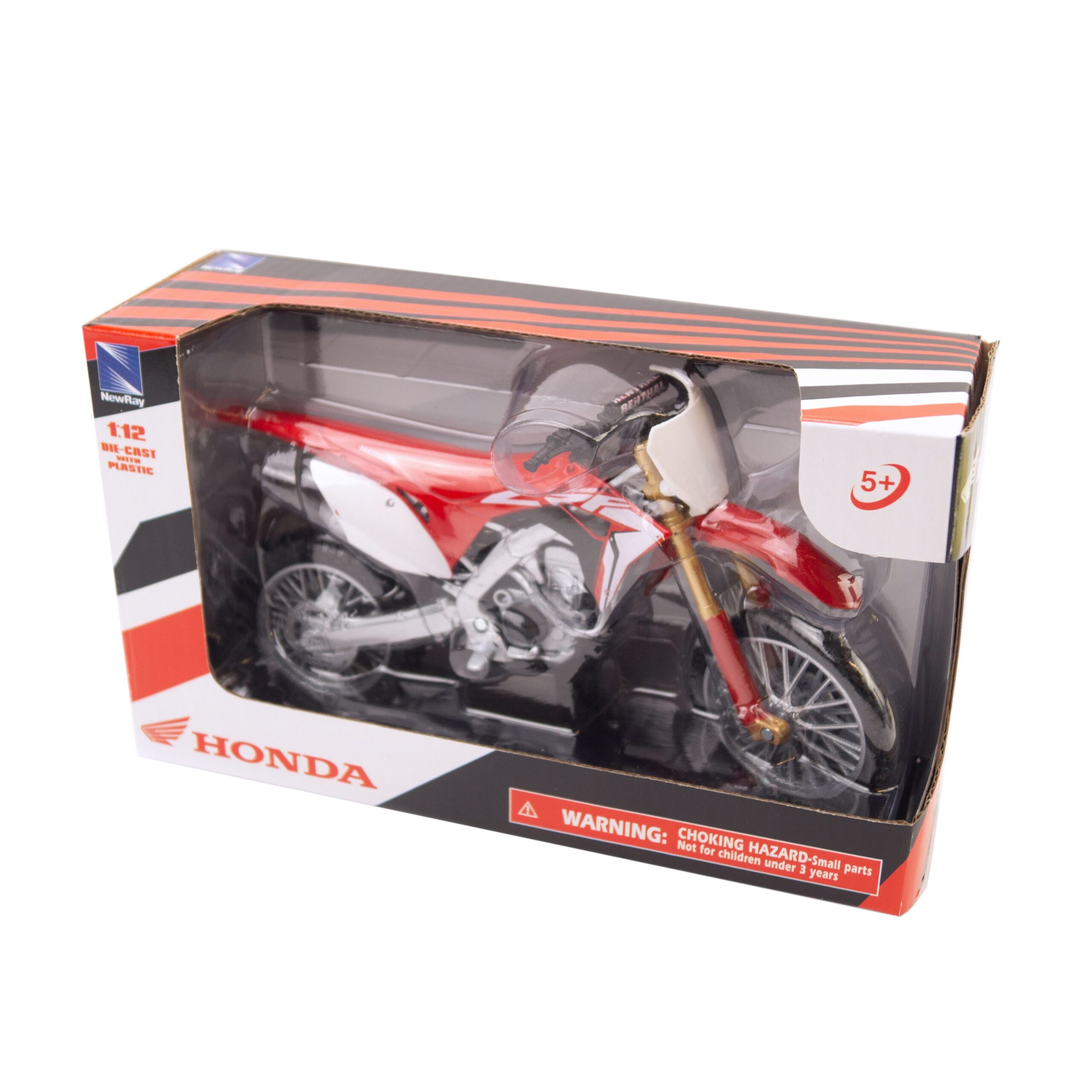 MODEL DIE CAST HONDA CRF 450 R 2017, RED AND WHITE, 1:12 SCALE, NEW RAY 57873