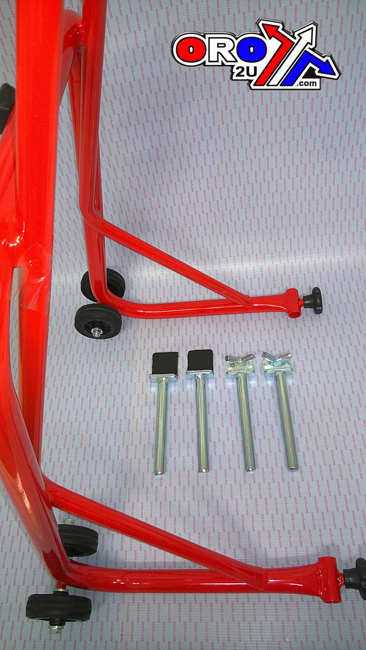 Constructed from stainless steel with a RED powder coated finish. Ideal for that quick stop in the pits. Comes with 2 different jack fitments.