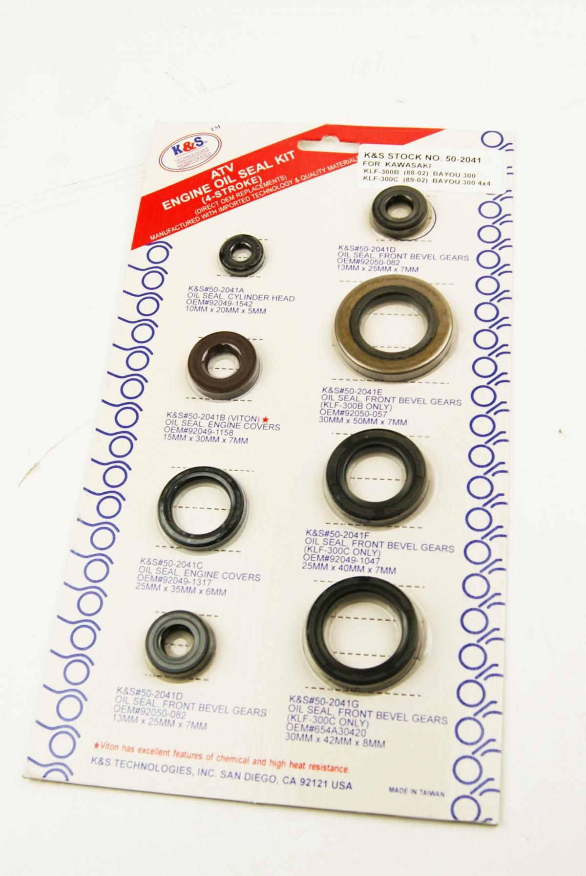 KAWASAKI KLF-300 B (88-04) Bayou 300 KAWASAKI KLF-300 C (89-06) Bayou 300 4×4 This is a complete direct OEM replacement kit from K&S Technologies, Inc. Includes all engine oil seals for a complete rebuild.
