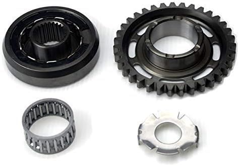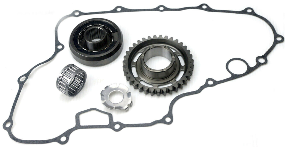 - Includes clutch outer, one-way clutch, friction ring, 35-tooth starter gear, needle roller bearing, lock washer (18mm), and right-side cover gasket