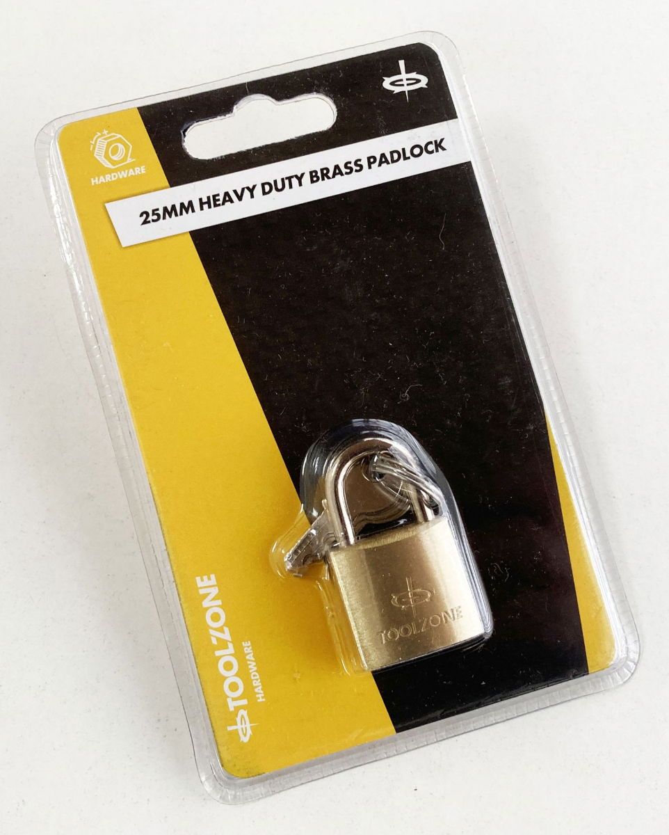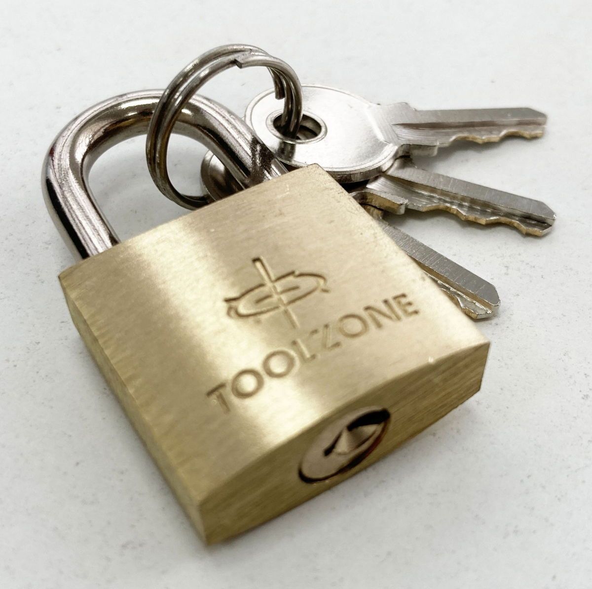 PADLOCK HEAVY DUTY BRASS 25mm WITH 3 KEYS – TOOLZONE KDPLK014