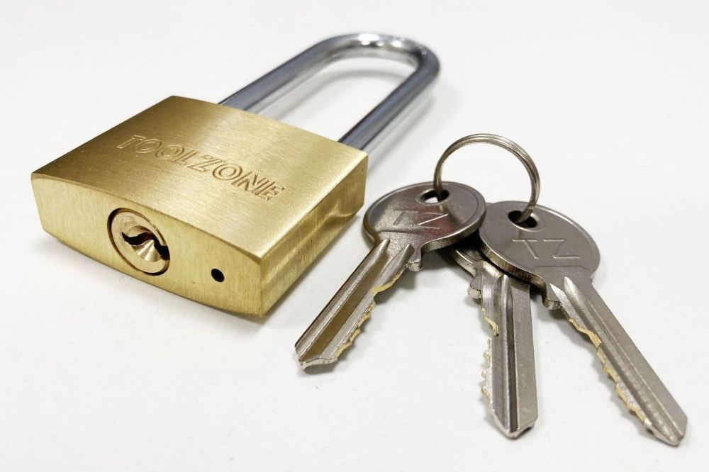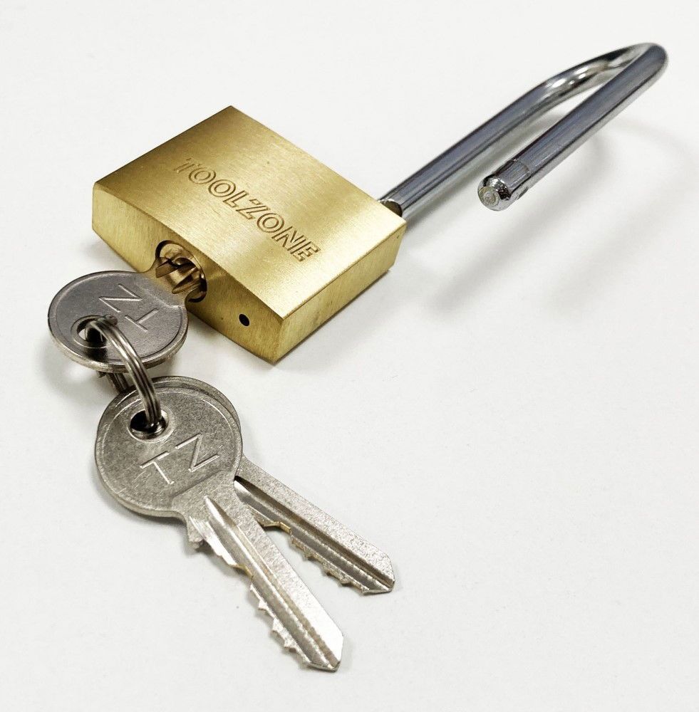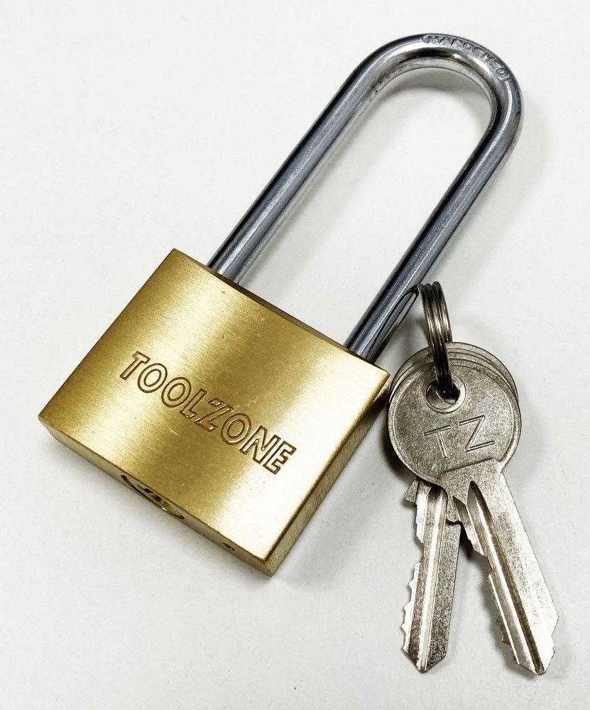PADLOCK LONG SHANK BRASS 38mm 57mm SHACKLE WITH 3 KEYS – TOOLZONE KDPLK040