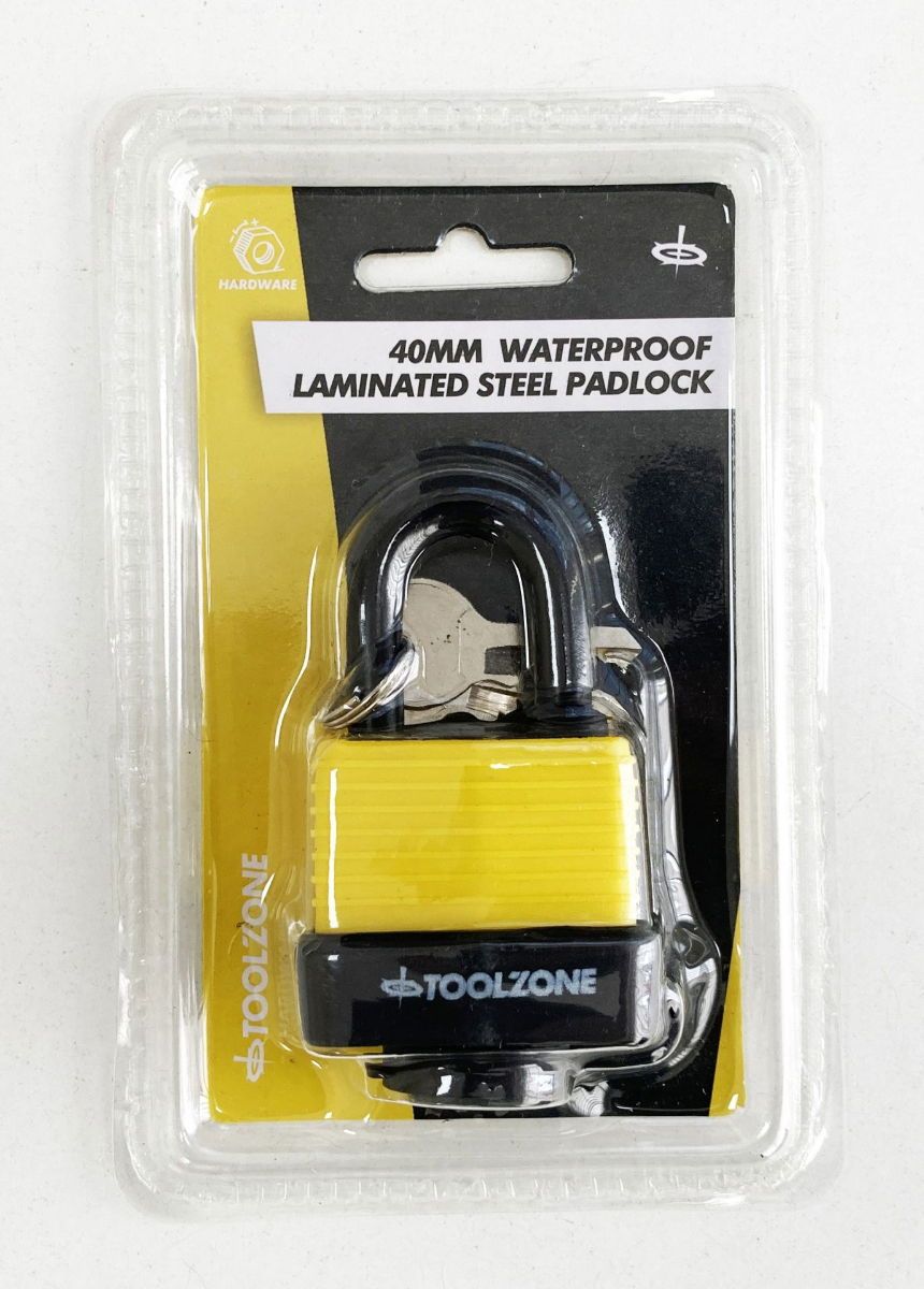 PADLOCK WATERPROOF LAMINATED 40mm 6mm SHACKLE WITH 2 KEYS – TOOLZONE KDPLK100