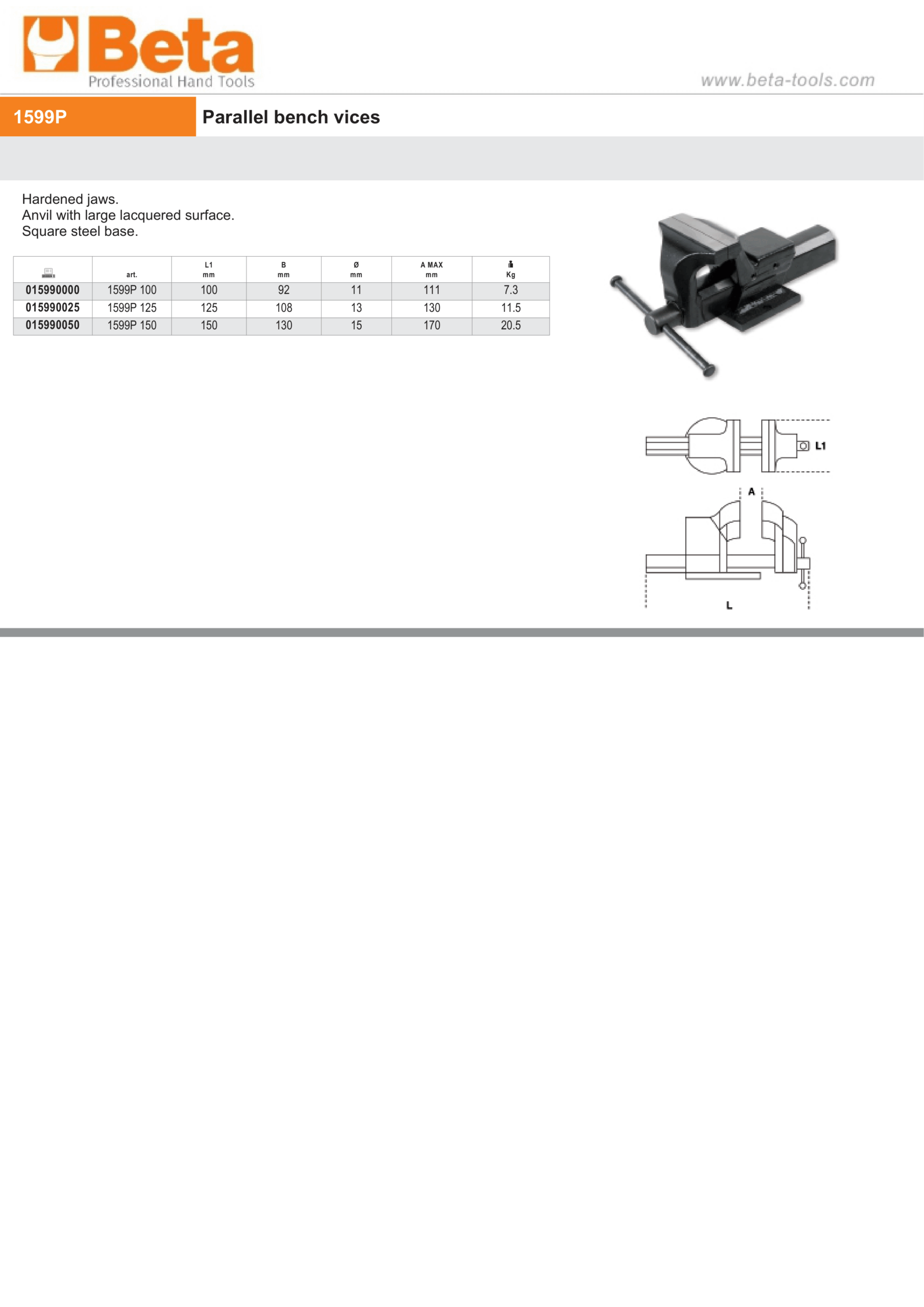 The Beta Tools Parallel Bench Vice 125mm Jaws – Beta Tools 1599P 125 is a robust and reliable tool designed for precision and stability in various clamping applications. This bench vice is an essential addition to any professional workshop, offering exceptional performance and durability.