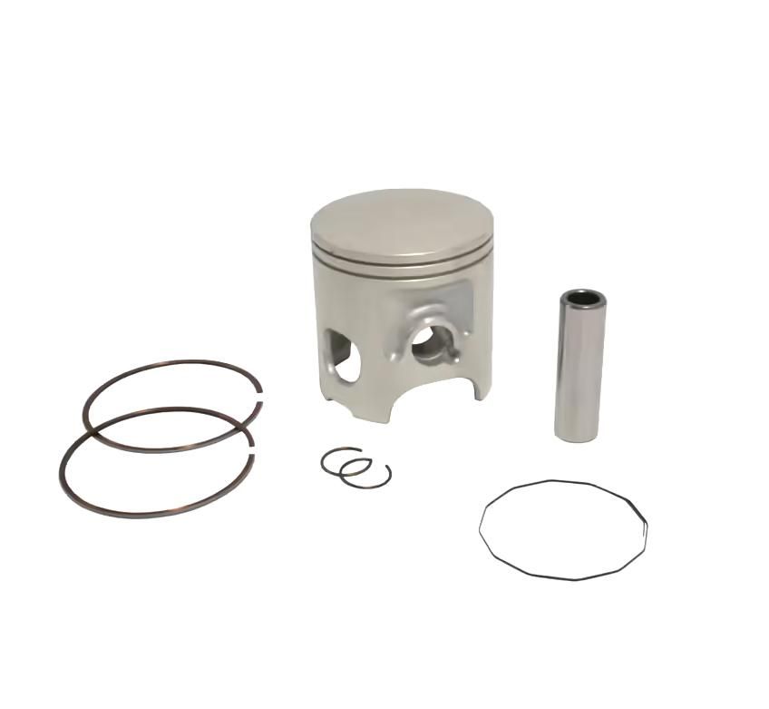 This piston kit contains the piston, the pin, the circlips, and the piston rings. All components are replaceable and interchangeable in case of need.